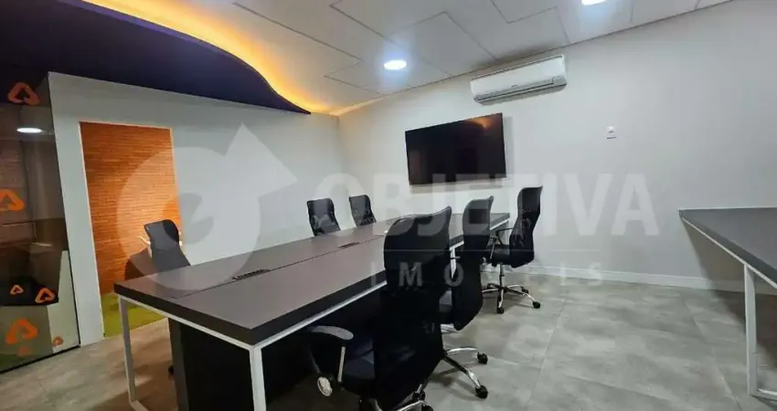 Sala comercial para aluguel no bairro Jardim Karaíba, na região espetacular do pátio vinhedos, com 50 m² de área privativa, totalmente mobiliada. Conta com dois aparelhos de ar-condicionado smart, televisão de 65 polegadas, duas plataformas com capacidade para dez posições cada, além de duas salas menores que podem ser utilizadas para reuniões ou feedbacks. Banheiro masculino e feminino na área externa. Próximo ao Uberlândia Shopping.