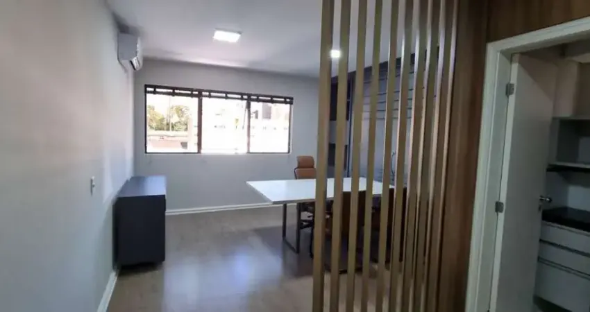 Excelente sala comercial para locação com piso laminado e uma bela vista do Centro Cívico.