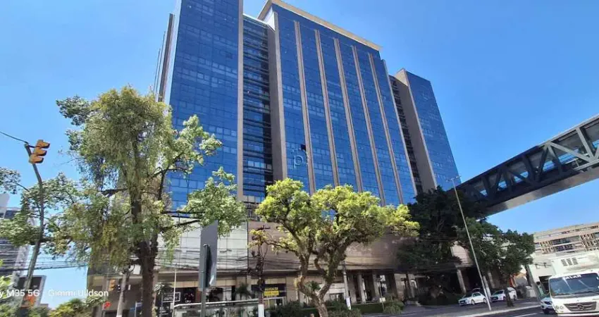 Linda sala com divisórias em vidro, copa com armário, banheiro, 1 vaga, de frente, 83m² de área privativa, localizada em edifício comercial de alto padrão, junto ao Shopping Praia de Belas. Portaria 24 horas com controle de acesso por catracas eletrônicas, sistema de CFTV, elevadores inteligentes com chamada programada, internet wireless nas áreas comuns, salas de reunião equipadas para videoconferência e auditório com capacidade para 125 pessoas.