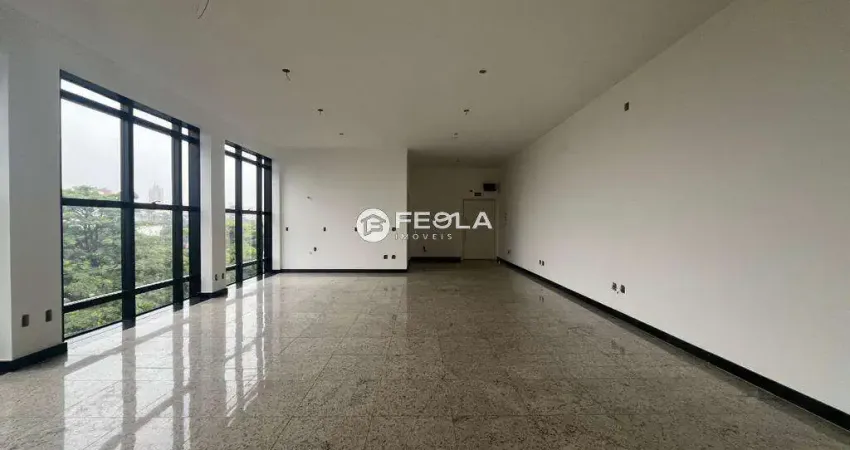 Excelente sala comercial com 144m², 2 lavabos (sendo um adaptado com acessibilidade), elevador, piso em granito e infraestrutura para ar-condicionado.