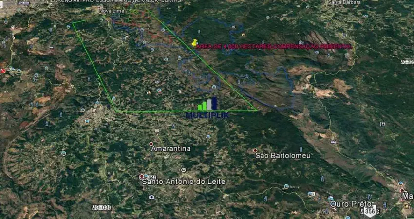 ESPETACULAR ÁREA DE 4.000 HECTARES,ÁREA SOMENTE PARA COMPENSAÇÃO AMBIENTAL,IDEAL PARA MINERADORAS,LOCALIZADA EM TRÊS MUNICIPIOS,ESTUDAM PROPOSTA DE PERMUTA,ACEITAM VENDER PARTE DA ÁREA E ESTUDAM CONTRA PROPOSTA TAMBÉM.confira
