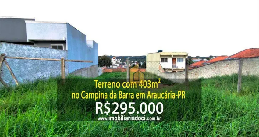 Terreno com 403m² no Campina da Barra em Araucária-PR - A venda por R$295.000,00