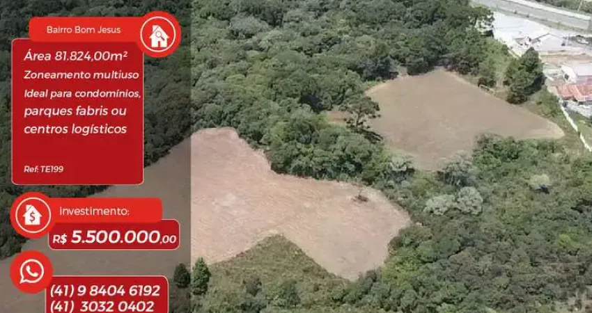 Oportunidade Estratégica: Área de 81.824 m2 no Bom JesusApresentamos uma área excepcional localizada na Estrada Dom Rodrigo, Bairro Bom Jesus. Com uma metragem expressiva e localização privilegiada, este terreno é o ativo ideal para quem busca escala e potencial de valorização imediata.