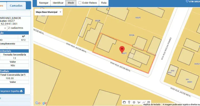 Localização Premium: Rua Rocha Pombo, 672 – Esquina com Rua Jacob Mehl. Área Total: 520,00 m².