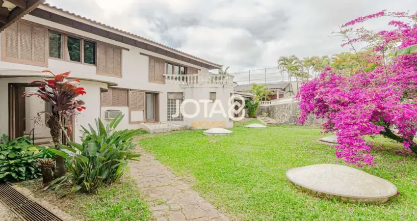 Casa com 3 salas de estar, 1 de jantar e 1 sala íntima, biblioteca, escritório, 2 lavabos, copa, uma cozinha espaçosa com despensa e 1 área de serviço completa, além de 2 dependências e 1 banheiro de serviço.