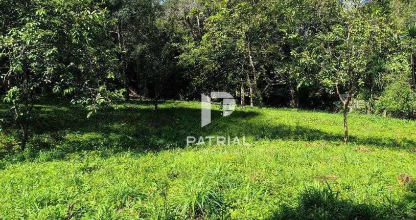 Terreno medindo 1.977,28m², com leve declive para o lado esquerdo, com diversas árvores.