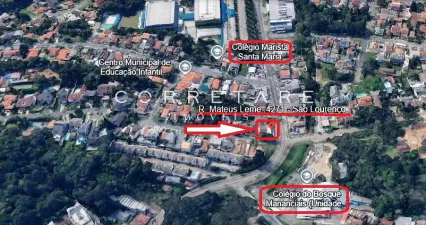 Excelente terreno na Rua Mateus Leme esquina com a João Guariza, em frente ao Colégio do Bosque Mananciais, á 100m do Colégio Santa Maria e Parque São Lourenço e Supermercados Festval. Fácil acesso aos Bairros Ahú, Centro Cívico, Mercês e Bom Retiro.