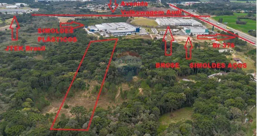 Terreno de 21.600 m² no bairro Contenda, localizado ao lado da Simoldes Plásticos e próximo de grandes indústrias como a Volkswagen do Brasil, Brose, JTEKT, Thyssekrupp entre outras, com fácil acesso às principais rodovias da região.