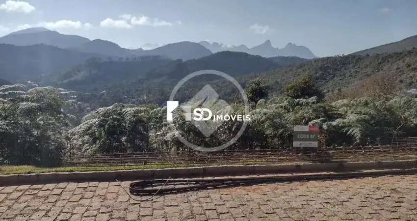 Excelente terreno com 325m², com suave declive, dentro de condomínio e com magnífica vista para a Mulher de Pedra.