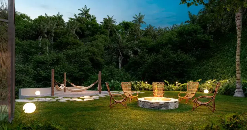FIREPIT COM LOUNGES - Dois espaços diferentes de encontros ao redor do fogo, ideal para noites estreladas e boas conversas.