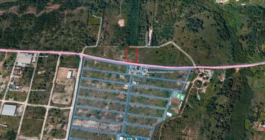 Pronta para empreender agora, na frente da portaria do Montreal Condomínio Club, na Avenida Engenheiro José Nilson de Sá, ligação de Parnamirim com a BR 304, a avenida está sendo pavimenta, a frente a área já está pavimentada.