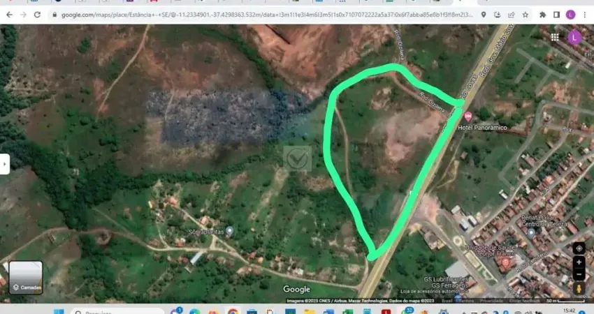Otimo terreno localizado às margens da BR 101. A 1,5 km da entrada da cidade de Esância. Propicio para área comercial ou loteamento.