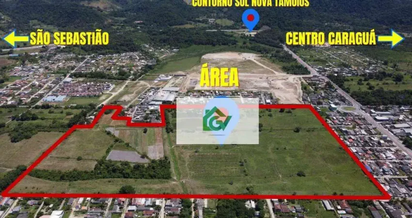 Área totalmente plana com 197.578 m², situada no bairro Pegorelli, em Caraguatatuba-SP, uma das cidades que mais cresce no Litoral Norte de São Paulo.