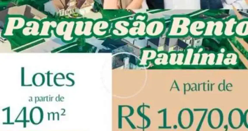 LANÇAMENTO EM PAULINIA, LOTEAMENTO ABERTO COM PREÇOS ESPETACULARES, EM UMA REGIÃO ESPECIAL... LOTEAMENTO SÃO BENTO ao lado do Parque da Represa, próximo ao Mini Pantanal, Ponte Estaiada, Bairros Monte Alegre, Condomínios Terras da Estância e Terras da Fazenda, inclusive com fácil acesso para Rodovias Anhanguera e Zeferino Vaz.