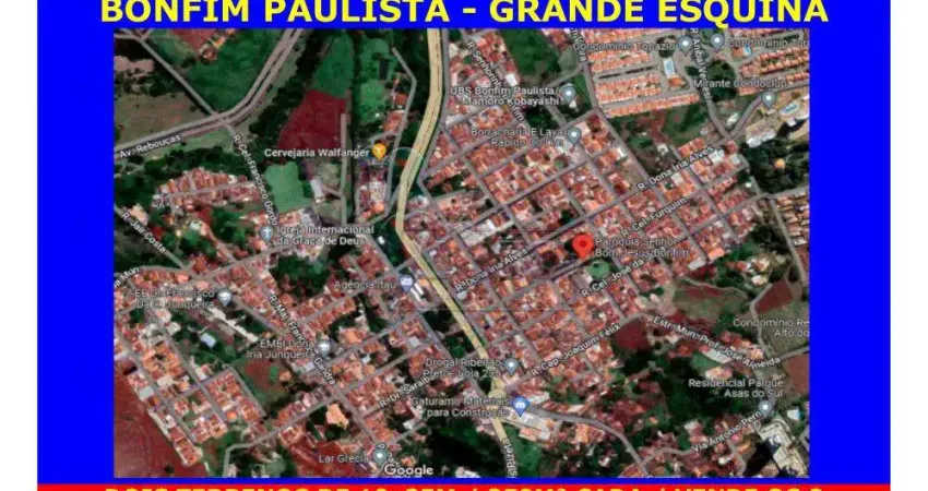 Uma maravilhosa esquina e já murada, são dois terrenos de 10X25m, 250M² cada, totalizando 500M².