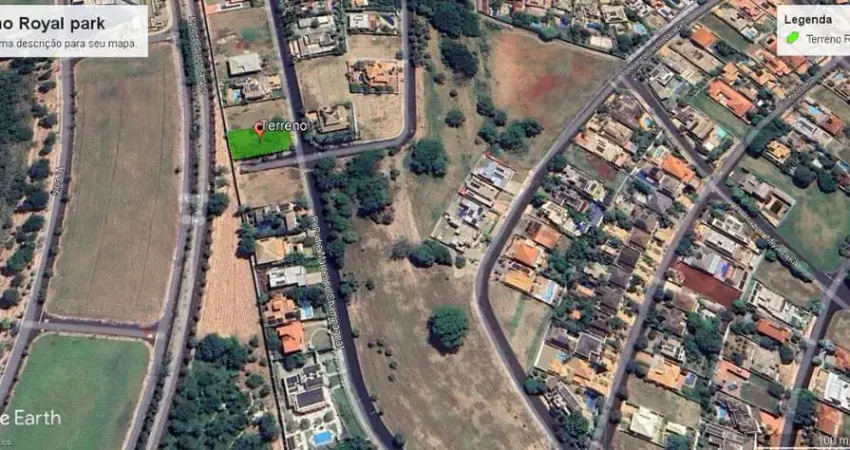 O terreno está localizado na região alta do Condomínio Royal Park, em uma ampla esquina, de frente para uma área verde preservada.