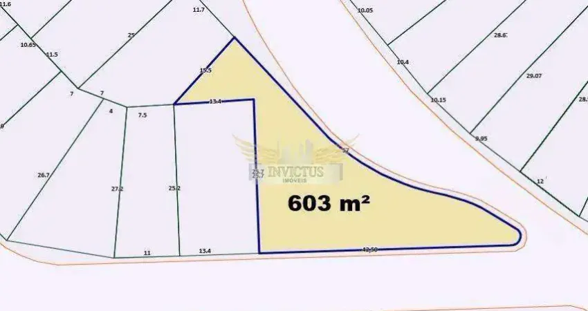 - Área de terreno: 603m², sendo a principal com 42,5 metros e a lateral com 57 metros.