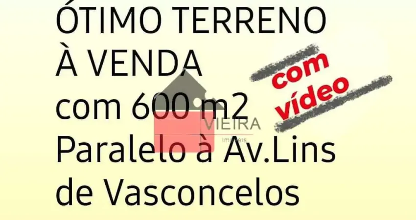 ÓTIMO TERRENO À VENDA com 600 m2, rua paralela à Av.Lins de Vasconcelos, São Paulo, SP