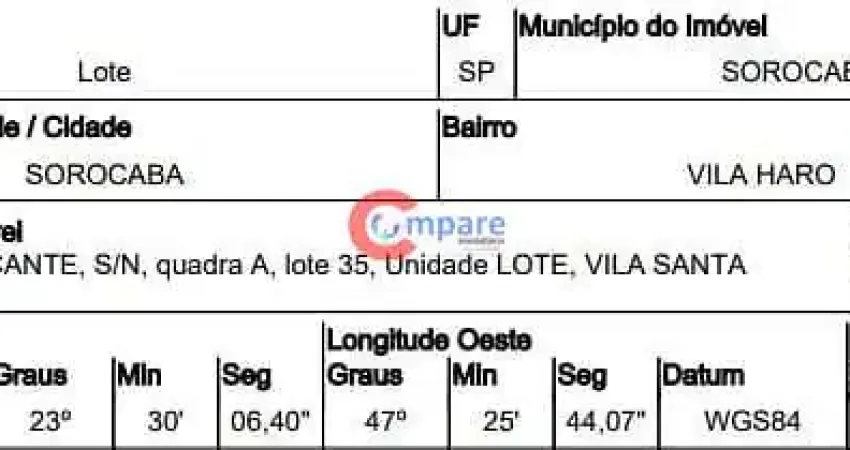 Terreno à venda na Rua Jorge Caracante, Vila Haro, Sorocaba