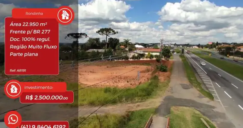 Terreno com 22.950m2, sem benfeitorias, localizado às margens da BR-277, sentido Ponta Grossa.