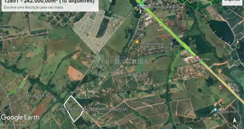 Rurais - Rio Preto - Área com 242 mil m² ou seja 10 alqueires próximo expansão urbana em localização privilegiada próximo aos Residenciais Fraternidade.. ref. 12851 atualizado em 06/01.