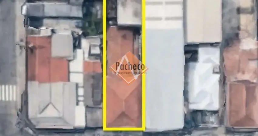 Terreno/Lote com 9,60m de frente e fundos, 38,95m de ambos os lados, totalizando 347m² e 300m² de construção.