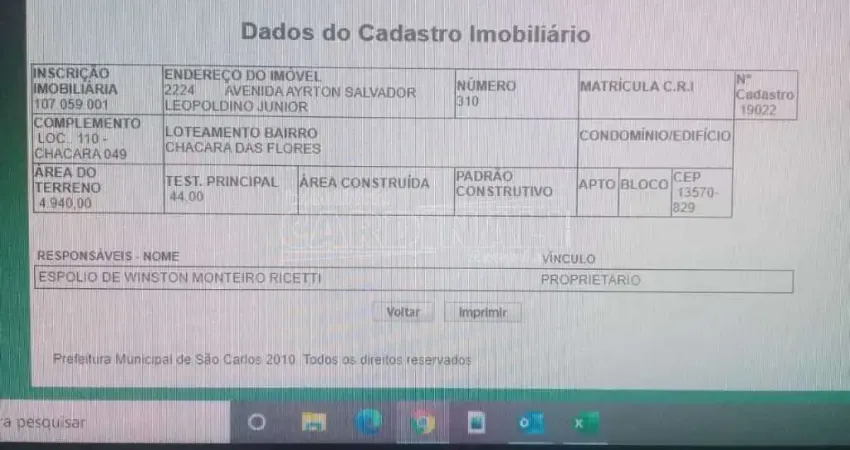 Avenida Ayrton Salvador Leopoldino Junior, , Lote 49, Quadra 110 Área 49, Área Rural de São Carlos, São Carlos/SP