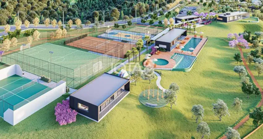 Condomínio com portaria e segurança 24 horas, piscina adulto e infantil, espaço fitness, 160 mil metros de área verde, playground, salão de festas, quadra de tênis, quadra de beach tennis, campo de futebol, quadra poliesportiva, salão de jogos e muito mais.