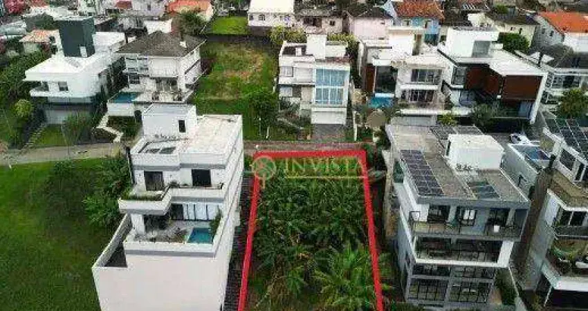 Lote com área privativa de 355,19m² e área total de 573,48m² com declive acentuado, pronto para construir, inclusive com projeto onde foi aproveitado ao máximo o declive acentuado do terreno.