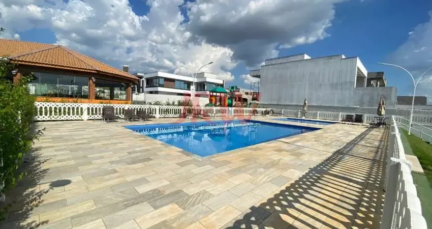 Condomínio com segurança 24 horas (portaria e ronda) e área de lazer completa sendo playground, piscina, salão de festas, quiosque com churrasqueira, quadra poliesportiva, campo de futebol, quadra de tênis e quadra de beach tennis.