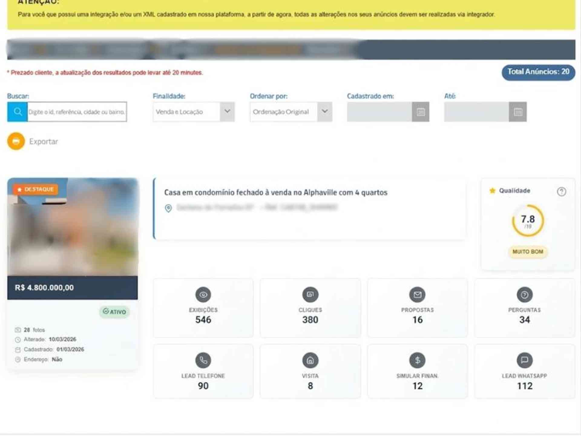 34% mais contatos recebidos por imóveis anunciados com destaque;